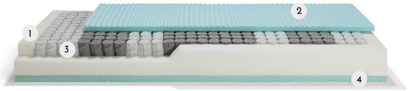 Il topper è proposto in abbinamento ad una struttura ibrida con 800 Molle Indipendenti Hi-SYSTEM che rappresenta il Sistema a Molle più avanzato in termini di sostegno, grazie alle 7 differenti zone di portanza, che consentono di calibrare il peso corporeo a seconda della pressione esercitata, favorendo la circolazione sanguigna ed un comfort senza eguali. Ciascuna molla, indipendente nei movimenti, risponde tempestivamente alle sollecitazioni, permettendo una maggiore qualità del sonno ed un ottimo rilassamento muscolare.