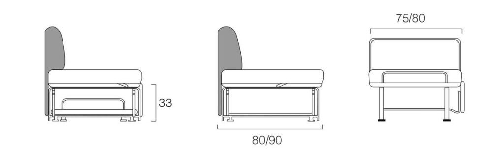 Il modello Space Double può essere un divano tre posti o un letto singolo. È fornibile anche con un meccanismo supplementare automatico da usare come letto singolo o per formare un matrimoniale con la parte soprastante. Telaio in tubo mobilio ad alta resistenza con verniciatura epossidica. Piano dormita con rete elettrosaldata in acciaio.